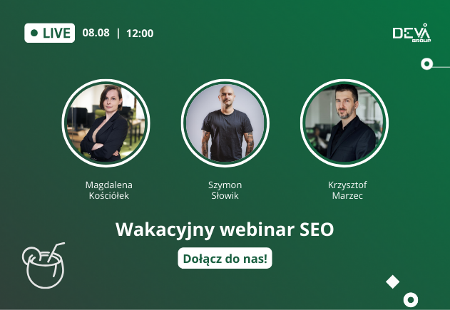 Jak dobrze spędzić wakacje? Zdobywając nową branżową wiedzę od ekspertów! Na kolejnym webinarze od DevaGroup zwłaszcza specjaliści SEO znajdą dla siebie ciekawe tematy.