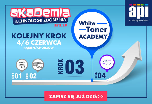 White Toner Academy to międzynarodowe wydarzenie organizowane przez producenta papierów termotransferowych Forver. W zeszłym roku polska odsłona WTA odbyła się we współpracy z API.PL i OKI. Ze względu na duże zainteresowanie White Toner Academy powraca do Polski – tym razem jako jedne z zajęć w ramach cyklu Akademii Technologii Zdobienia 2.0.