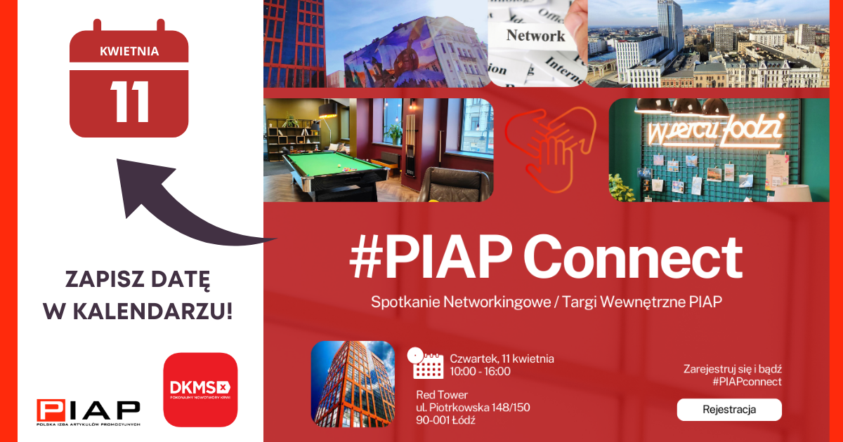 Polska Izba Artykułów Promocyjnych rusza z nową inicjatywą organizując spotkanie networkingowe oraz targi wewnętrzne pod hasłem #PIAP Connect. Wydarzenie skierowane jest do Członków stowarzyszenia i ma na celu wzmacnianie społeczności biznesowej zrzeszonej w PIAP.