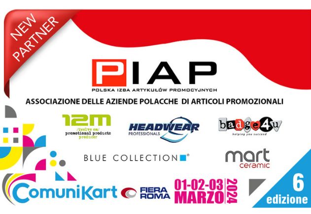 Polska Izba Artykułów Promocyjnych (PIAP) została partnerem B2B ComuniKart 2024 w Rzymie. To kolejne w tym roku, po targach PSI w Düsseldorfie, wydarzenie branżowe w Europie, na którym PIAP zaznacza swoją obecność.