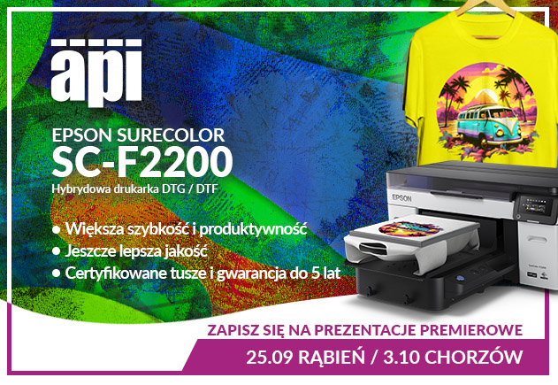 Wszystkich tych, którzy zastanawiają się, czy technologia druku bezpośredniego na tekstyliach (DTG) lub druk DTF może być odpowiednia do rozszerzenia zakresu działalności, jak i tych, którzy chcą mieć pełną kontrolę nad jakością i wykonaniem zamówienia dla klienta, zamiast zlecać go podwykonawcom, API.pl zaprasza do przyjrzenia się możliwościom, jakie oferuje hybrydowa drukarka Epson SureColor SC-F2200.