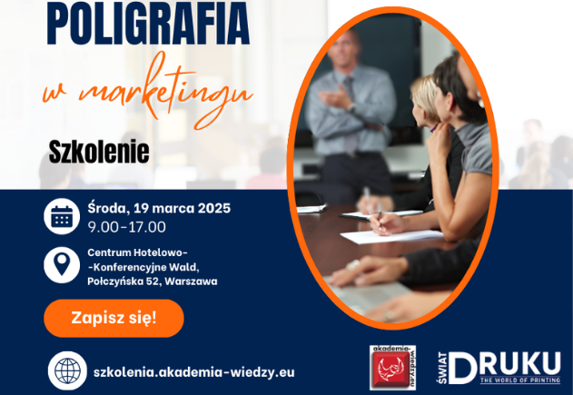 Wydawnictwo Polski Drukarz, wydawca magazynu „Świat DRUKU”, poświęconego szeroko pojętej branży poligraficznej, reklamowej i opakowaniowej, oraz organizator wydarzeń branżowych w ramach Akademii Wiedzy, zaprasza na szkolenie „Poligrafia w marketingu”, które odbędzie się w Warszawie 19 marca br. w godz. 9.00–17.00.