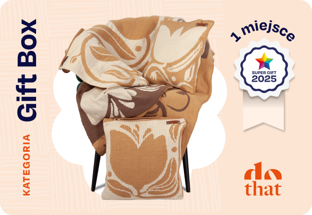 Dothat z kolejną nagrodą Super Gift! Tym razem w kategorii Gift Box, w której komplet dzianinowy koca i poszewek na poduszki zdobywa 1. miejsce.