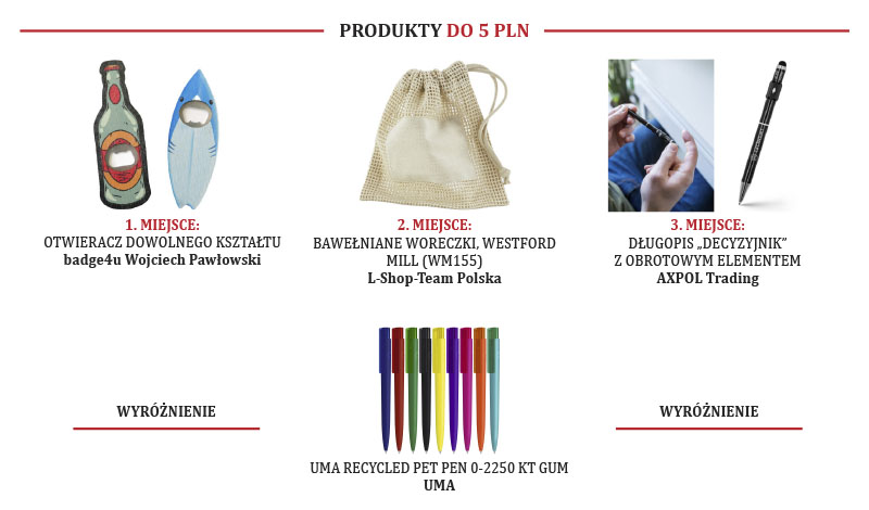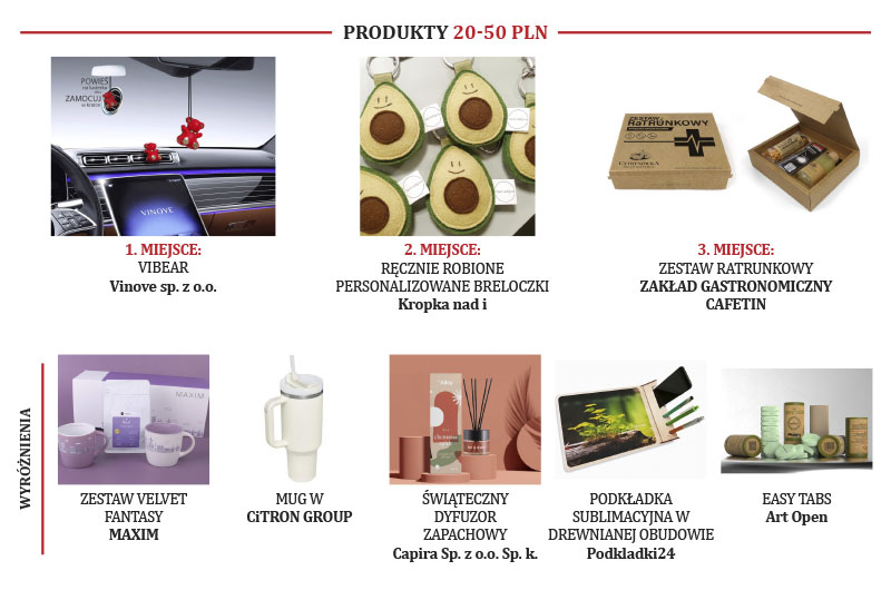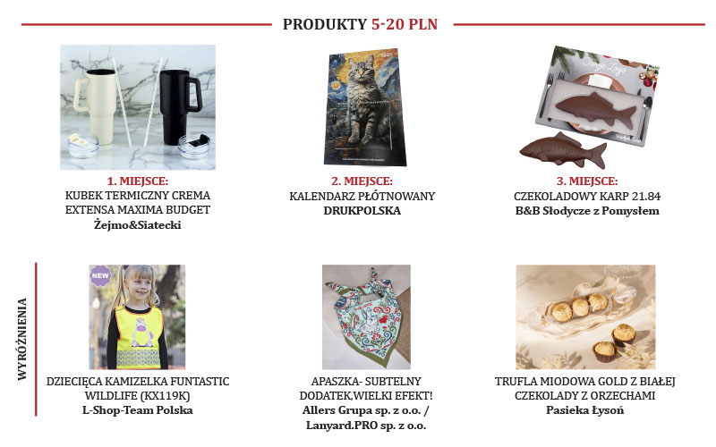 W każdej z kategorii przydzielono trzy pierwsze miejsca – oraz wyróżnienia. W przypadku kategorii 20-50 zł zostało przydzielonych 5 wyróżnień ze względu na bardzo małe różnice w ilości głosów na dane zgłoszenie, a była to jednocześnie kategoria, w której było najwięcej zgłoszeń.